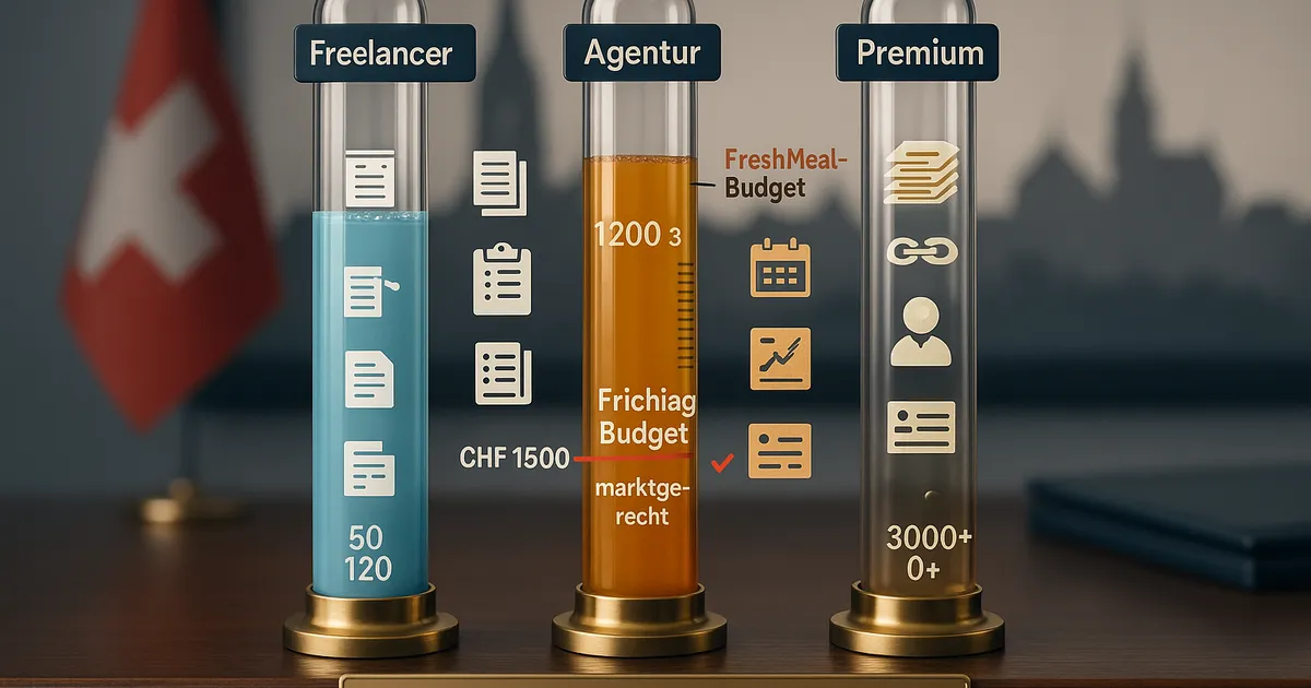 Das Budget von CHF 1’500/Monat – genau der Betrag aus der FreshMeal Case Study – liegt mitten in diesem Korridor. Bei diesem Budget ist die Erwartung, nach 12 Monaten null Ergebnisse zu haben, nicht vertretbar. Das Unternehmen hätte in dieser Zeit mindestens 20-30 Blogartikel, ein vollständiges technisches Audit und erste Seite-1-Rankings für Long-Tail-Keywords erwarten dürfen.
